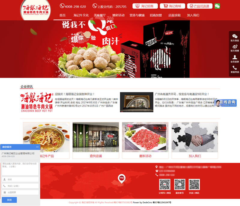 广州海记餐饮企业管理有限公司是一家从事餐饮连锁加盟及饮食研究等领域的餐饮连锁公司。其品牌潮汕牛肉火锅自1999年诞生以来,在市场上迅速发展,截止2013年,经营店面已覆盖了广州市,展现出了潮汕餐饮的特有风范,为实现潮汕牛肉标准化及创建绿色健康、环保低碳的餐饮模式做出了突出贡献。广州**餐饮企业管理有限公司是一家从事餐饮连锁加盟及饮食研究等领域的餐饮连锁公司。其品牌潮汕牛肉火锅自1999年诞生以来,在市场上迅速发展,截止2013年,经营店面已覆盖了广州市,展现出了潮汕餐饮的特有风范,为实现潮汕牛肉标准化及创建绿色健康、环保低碳的餐饮模式做出了突出贡献。