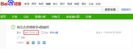 8 号上午那天突然群里有人甩出一条信息,股市暴跌的原因是xx之子涉嫌做空,我当时觉得好奇就去百度搜素了一下,恰好当时有人做了一条关于这个问题提问,点看一看,好家伙,经过一个上午的发酵,浏览已经破千了,我当时隐约觉得如果借助这个热点话题提问并巧妙地植入我们的网站,很有可能带来可观的流量访问。