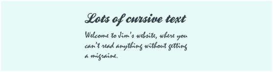 尽管草书文字很有特色,但在网站中大篇幅使用却会带来不少弊端。草书文字会破坏网站内容的可读性,加重阅读负担,影响了访客阅读、浏览的舒适度,同时还会暴露出网站的过时与落伍。下图就是不可取的栗子: