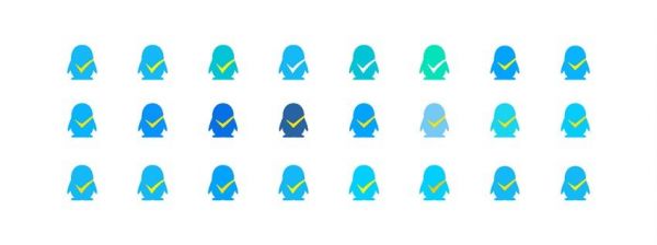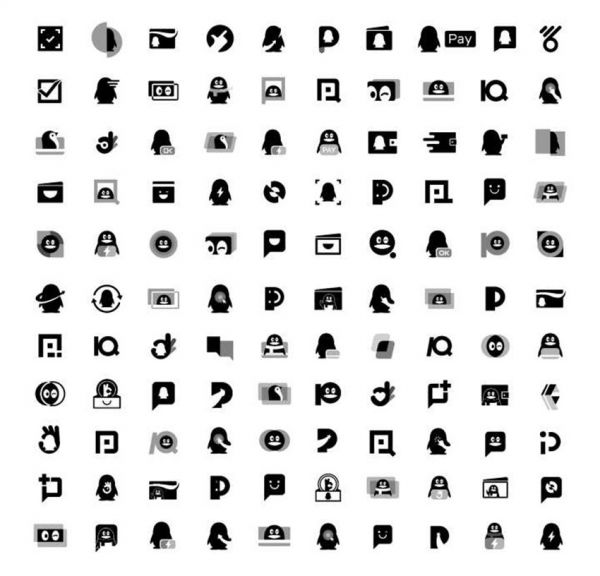 不过打勾的图形似乎割裂了QQ 的身体,设计师们又在方案 3 的基础之上尝试多一些,接着就是优化标志设计这一步了。