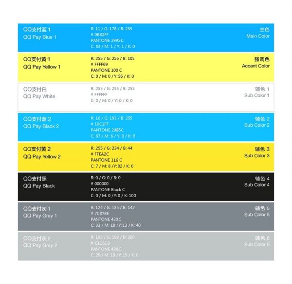 选择明亮的蓝色与黄色作为新的主色,能更好地体现 QQ 支付较强的生命力,充满清新活力,又有助于提高产品延展的可用性。