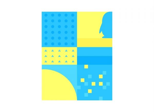 方案 1:扣在一起的两个方形元素寓意着不同的文化与平台,抽象的几何方形元素与 QQ 的剪影达到比较巧妙的结合,意在传达出 QQ 支付品牌的主要内容。