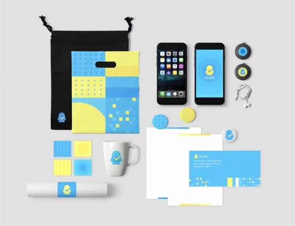 视觉延展的图形元素来源并不是凭空捏造的,图形元素需要与品牌、Logo 之间是有规律可循的,QQ 支付用简约的抽象图形表达 QQ 支付的品牌特性,这样的视觉延展更具有流动性。